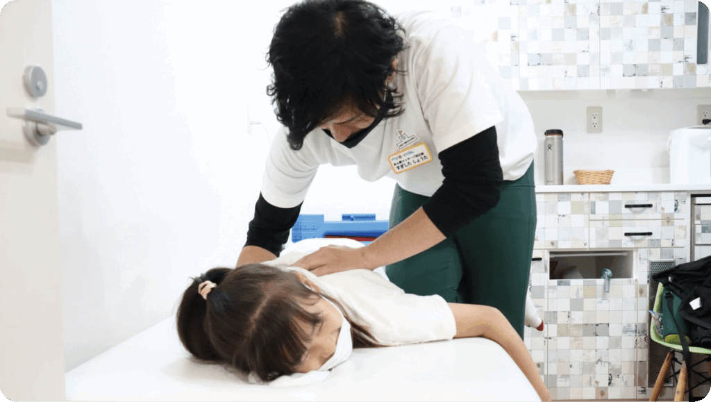 口腔機能支援士の資格を持つスタッフが個別にトレーニングを行います。口腔機能の成長が不足している場合やよりスピーディに機能の改善を目指したいお子さんに。姿勢に問題がある場合には鍼灸師による施術を受けることができます。